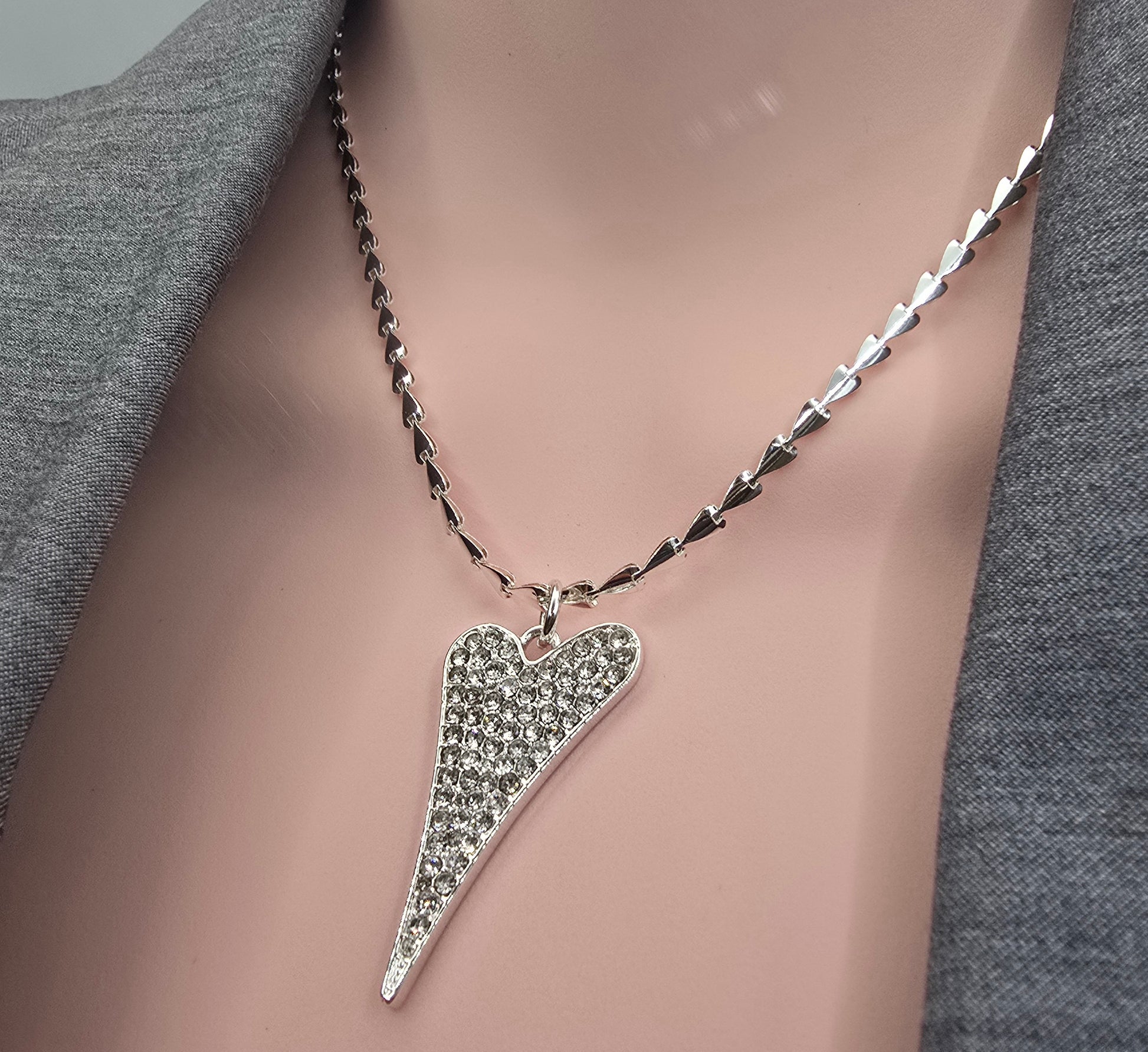 SILVER DIAMANTE HEART NECKLACE*