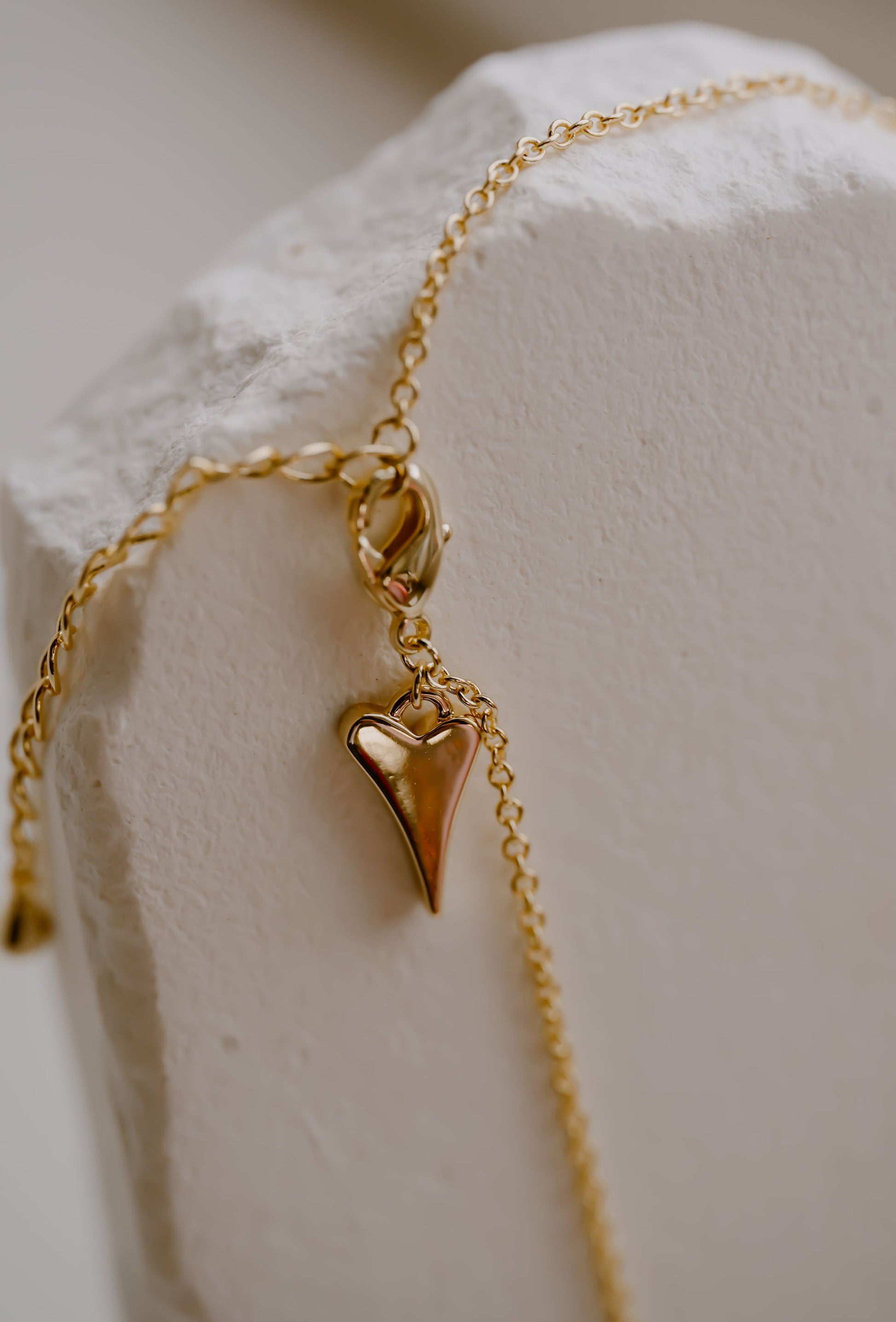 Gorgeous Miss Dee 14ct yellow gold plated bubble style heart pendant bracelet with lobster clasp fastening.