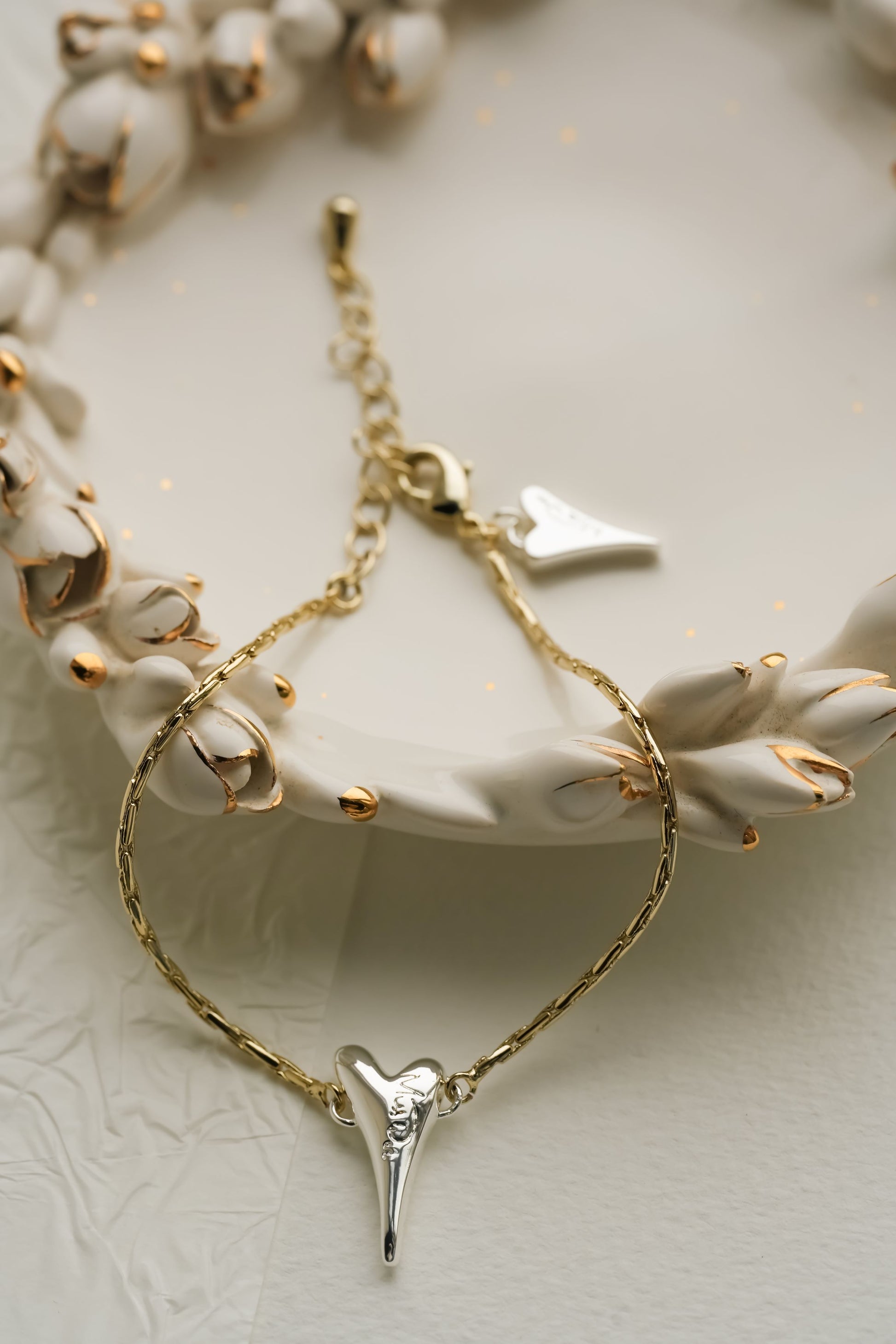 Beautiful Miss Dee 14ct Yellow gold/ Silver plated fashion Bracelet with Solid Heart pendant with a lobster clasp fastening.